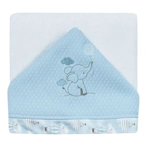 Toalha fralda em algodão, perfeita para a pele sensível do recém-nascido; Com Capuz; Nanotecnologia que agrega maciez e tratamento anti pilling, que torna o produto mais resistente às lavagens, proporcionando maior durabilidade, e retardando o aparecimento das bolinhas na malha; Suedine com nanotecnologia que agrega maciez e tratamento antibacteriano e antifúngico; Bordado protegido com aplique e estampa rotativa exclusiva Hug.