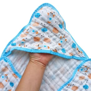 Cada detalhe foi pensado para proporcionar segurança e bem-estar: o capuz mantém a cabecinha aquecida, o tecido super absorvente deixa a criança sequinha em instantes, e o acabamento em viés de algodão garante resistência e durabilidade mesmo após várias lavagens.