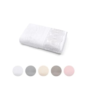 Toalha felpuda com aplicação de Renda Bordada. A delicadeza da renda aplicada na toalha confere ao produto um visual requintado.