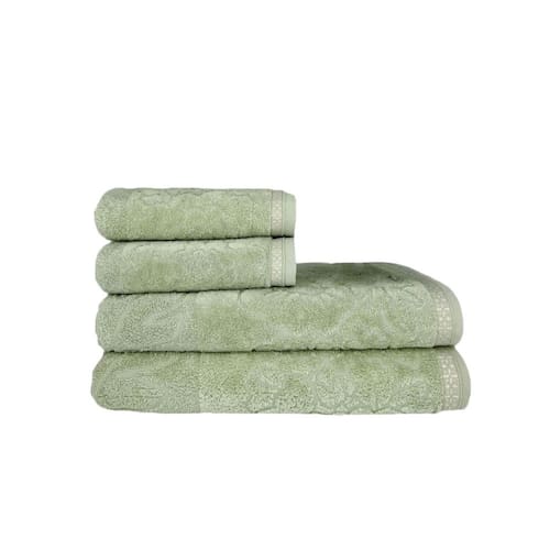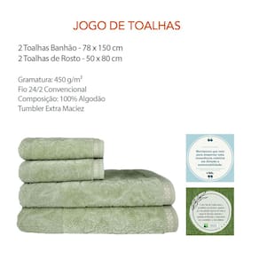 Contem: 2 Toalhas de Rosto Medidas: 50 x 80 cm 2 Toalhas Banhão Medidas: 78 x 150 cm Gramatura: 450 g/m² Composiçao: 100% Algodao Fio 24/2 Convencional Tumbler Extra Maciez
