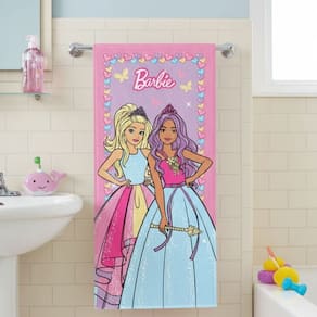 A Toalha de Banho Infantil Felpuda Barbie Reinos Mágicos Lepper transforma a hora do banho em um momento ainda mais especial. Com uma estampa encantadora, ela traz a Barbie em um universo mágico, com fadas, nuvens coloridas, unicórnio, borboletas e corações, deixando o dia a dia das crianças mais divertido.