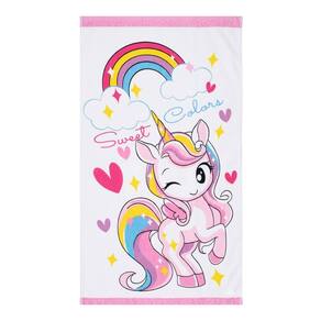 Toalha de Banho Infantil Teka Candy Unicórnio 100% Algodão 65cm x 1,15mA Toalha de Banho Infantil Teka Candy Unicórnio é perfeita para transformar o momento do banho em uma experiência mágica e encantadora.Com uma estampa delicada inspirada no universo dos unicórnios, ela traz um visual lúdico, colorido e cheio de fantasia, ideal para crianças que adoram um toque de imaginação no dia a dia.Produzida pela renomada marca Teka, referência em qualidade no segmento de cama, mesa e banho, essa toalha combina conforto, beleza e durabilidade, sendo uma excelente escolha para o uso diário.