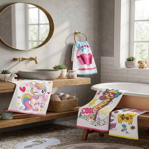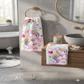 Estampa Encantadora e Cheia de MagiaO grande destaque desta toalha é sua estampa de unicórnio, que transmite delicadeza e fantasia. Com cores suaves e detalhes encantadores, o design cria um visual alegre e mágico, perfeito para estimular a criatividade e tornar o banho um momento especial.A estampa possui excelente definição, com cores vivas que se mantêm bonitas mesmo após várias lavagens.