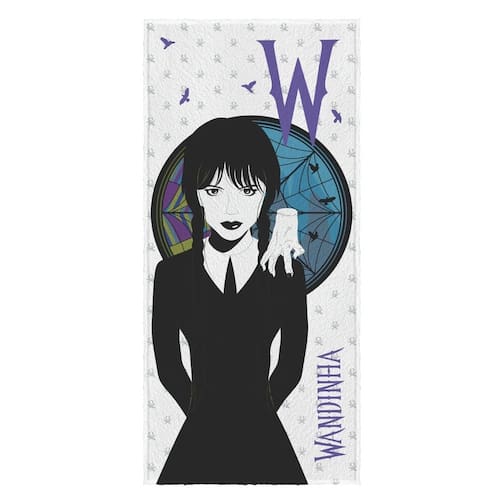 A toalha felpuda da coleção Wandinha traz em sua estampa o incrível e misterioso universo da icônica personagem. Seu tecido apresenta a exclusiva qualidade da felpa que não desfia, possui ótima absorção e durabilidade. Quando a hora do banho se transforma em uma aventura, a alegria e conforto das crianças são mais que garantidos. É a magia do Jeito Lepper entrando na rotina dos pequenos.