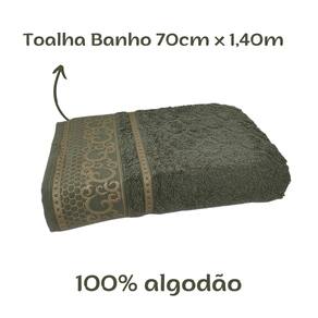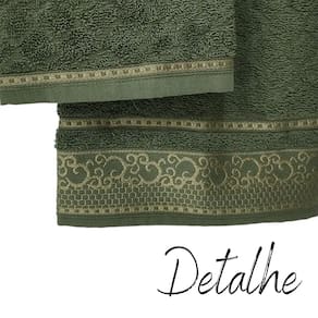 1 Toalha de Banho Eudora na cor Verde Oliva Medidas: 70cm x 1,40m Gramatura: 380 g/m² 100% algodão (exceto efeito decorativo)