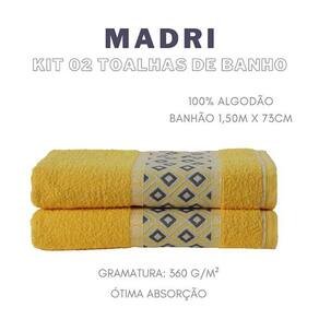 Com medidas aproximadas de 1,50m x 73cm, as toalhas de banho do Kit 02 Banhos Avulsos Madri Amarelo Ouro são perfeitas para envolver o corpo e proporcionar uma sensação de conforto após o banho.