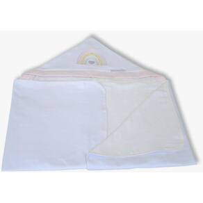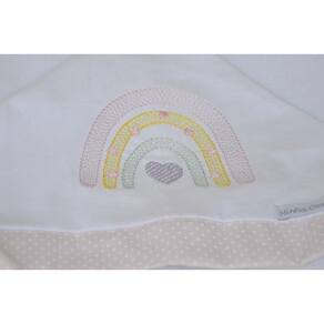 Hora do Banho , momento delicioso e refrescante. A toalha de Banho deve ser macia de preferência forrada com fralda , assim é a toalha da Minha Casa Baby, em malha forrada com fralda bem macia e de tamanho gigante envolvendo o corpo do bebe todinho na retirada do banho, sem que tenha mudanças bruscas de temperatura. Bordado a maquina dando um charme na peça - Arco Iris Produto confeccionado por nós com qualidade e carinho em malha 100% algodão . Medindo - 90 cm X 106 cm Ean: 7898506749270