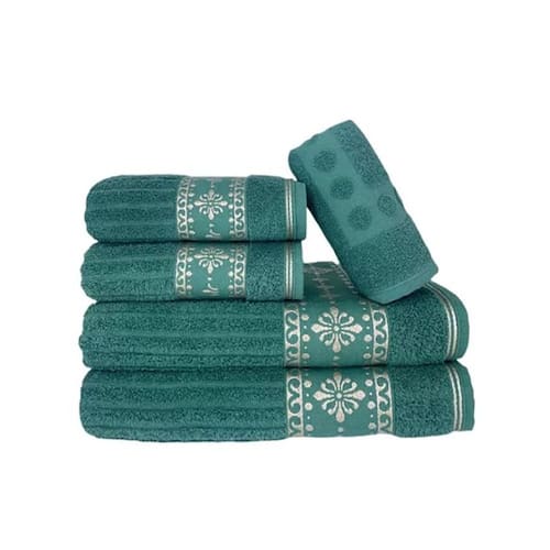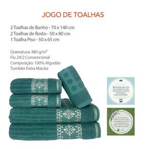 Contem: 1 Toalha de Piso Medidas: 50 x 65 cm 2 Toalhas de Rosto Medidas: 50 x 80 cm 2 Toalhas de Banho Medidas: 70 x 140 cm Gramatura: 480 g/m² Composiçao: 100% Algodao Fio 24/2 Convencional Tumbler Extra Maciez