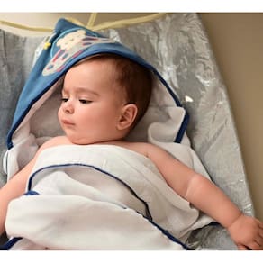 A toalha de banho para bebê é um item indispensável no enxoval do seu pequeno. Feita com tecido macio e absorvente, proporciona uma secagem suave e rápida após o banho, mantendo a pele delicada do bebê protegida e livre de irritações.