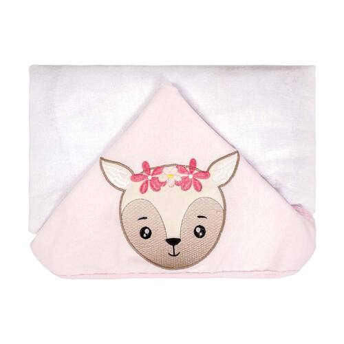 Toalha de Fralda com Capuz 68 cm x 1,20 m Baby Joy - Cervo Rosa