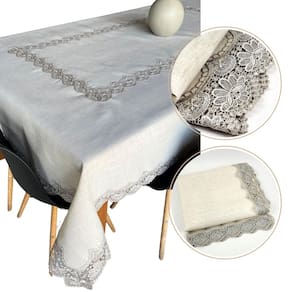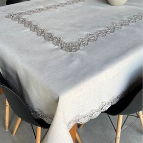 Toalha De Mesa 270x180cm Cinza Rendada Linho Poliester Encante sua Casa com Nossa Toalha de Mesa Rendada