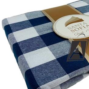 Toalha de Mesa 4 Cadeiras Pic Nic Azul Marinho Algodão Xadrez