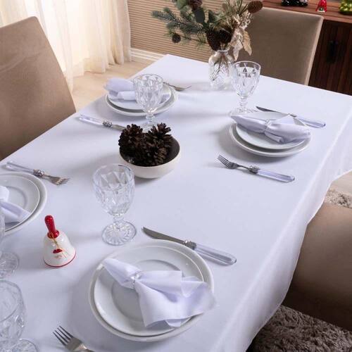 Toalha De Mesa Basic Lisa Oxford Decoração 2,00m X 1,40m Para 6 Lugares Branco 100% Poliéster