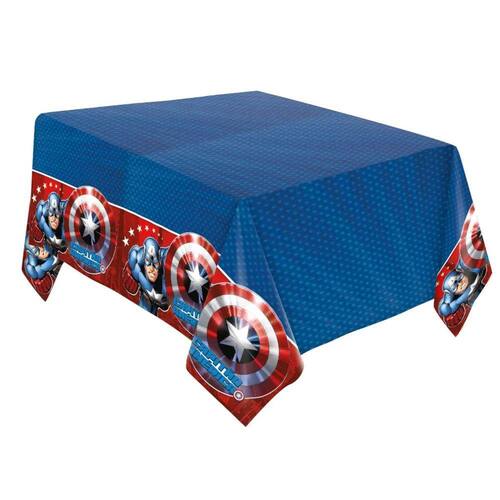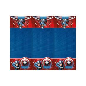 Toalha de mesa temática do Capitão América, ideal para festas de aniversário e celebrações temáticas.