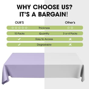 - Opção econômica: nossas toalhas de mesa descartáveis para festas vêm em uma variedade de cores vivas para escolher. Seja para refeições internas/externas, decoração ou uso diário, nosso pacote com 10 é uma opção econômica.