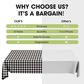 - Opção econômica: nossas toalhas de mesa descartáveis para festas vêm em uma variedade de cores vivas para escolher. Seja para jantar interno/externo, decoração ou uso diário, nosso pacote com 10 é uma opção econômica.