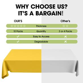 - Opção econômica: nossas toalhas de mesa descartáveis para festas vêm em uma variedade de cores vivas para escolher. Seja para jantar interno/externo, decoração ou uso diário, nosso pacote com 10 é uma opção econômica.