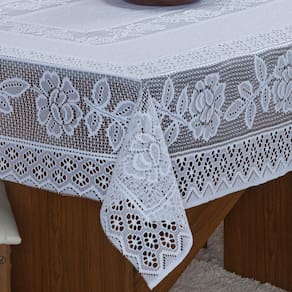 Contém na Embalagem: 01 Toalha de Renda Quadrada 1,40m x 1,40m.