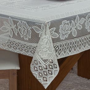 Contém na Embalagem: 01 Toalha de Renda Quadrada 1,40m x 1,40m.