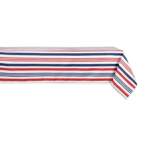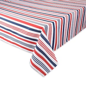 100% poliéster DII, à prova de derramamento e à prova d'água, lavável à máquina, toalha de mesa para uso externo, 60x120", faixa patriótica de 4 de julho, acomoda de 10 a 12 pessoas