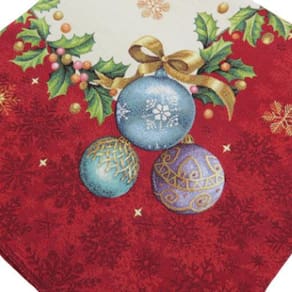 Toalha natalina Happy Christmas de 6-8 lugares, produzida em Gobelin europeu de alta qualidade.