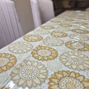 Toalha de mesa transparente estampada. Marca: Love4Home Informações do produto: - Composição: 70% PVC e 30% Polipropileno; - Espessura: 0,10mm - Gramatura: 0,125g/m² Modo de lavagem: -Limpar com Sabão neutro e esponja macia; -Retirar o excesso com um pano levemente umedecido com água; -Não recomendamos o uso de produtos químicos; -Não passar ou expor ALTAS TEMPERATURAS; -Não secar em máquina; -Não alvejar.