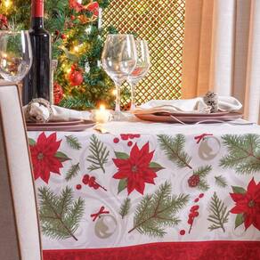 Toalha de Mesa Facile Natalina 10 Lugares 140x300cm 100% Poliéster Flor de Natal -