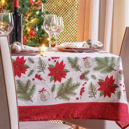 Toalha de Mesa Facile Natalina 6 Lugares 140x200cm 100% Poliéster Flor de Natal -