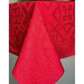 Toalha de mesa IDYLLE Vermelha em Jaquarde 100% Algodão, retangular, com elegante desenho geométrico. Possui tratamento anti-manchas e cores resistente aos lavagens.