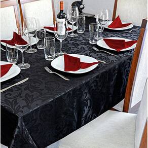 Toalha de Mesa Jacquard 04 Lug Cozinha quadrada Cor: Preto Toalha de Mesa de Jacquard com lindo desenho floral, peça moderna para eventos especiais em seu lar.