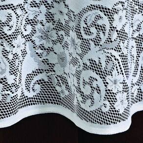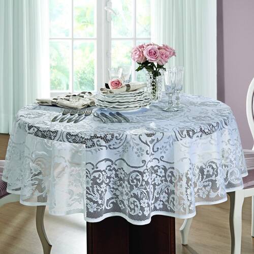 A Toalha de Mesa Lepper redonda Renda Rosas possui característica romântica com pontos que evidenciam flores e delicados arabescos.
