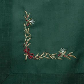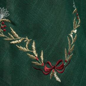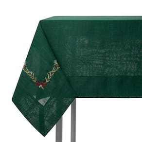 A Toalha de mesa Natal Blazon é confeccionada 100% em poliéster com bordado de folhas de azevinho dourado, que se adequa à decoração do natal tradicional, com um leve tom romântico. Toalhas de mesa são itens essenciais para compor e proteger a mesa.
