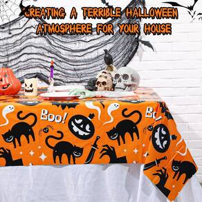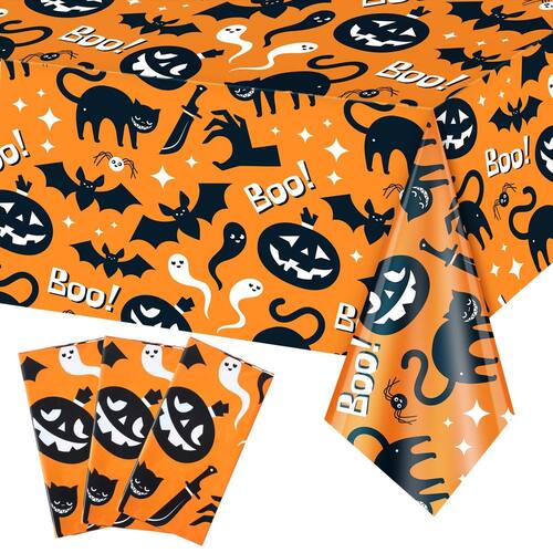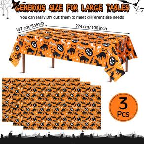 Características: Pacote com 3 designs assustadores: Eleve suas decorações de mesa de Halloween com nosso pacote de 3 toalhas de mesa de Halloween. Com designs vibrantes de abóbora, boo, morcego, aranha e teia, eles são ideais para ambientes internos e externos de Halloween, protegendo e estilizando suas mesas com um visual assustador. Festas festivas de Halloween: Intensifique suas decorações de festa de Halloween com nossa versátil toalha de mesa de plástico para Halloween. Ela não apenas cria um ambiente assustador, mas também atua como uma capa protetora elegante, garantindo que a decoração da sua mesa de Halloween seja funcional e atmosférica. Especificações: Material: plástico. Cor: vermelho, amarelo, preto. Tamanho: 108 × 137.2 cm/274 × 137 cm A embalagem inclui: 3 capas de mesa assustadoras para decorações de mesa de Halloween. Observações: Medição manual, considere pequenos erros de tamanho. A cor pode existir uma pequena diferença devido a diferentes telas. - Toalhas de mesa clássicas para festa de Halloween Boo Day: as toalhas de mesa retangulares apresentam padrões clássicos de Halloween, como abóboras, esqueletos, teias de aranha, fantasmas e morcegos em um fundo laranja. Ideal para festas de Halloween, jantares, festas mal-assombradas e decorações de casa, criando um ambiente assustador para sua celebração - Tamanho generoso para mesas grandes: cada toalha de mesa mede 54 × 108 polegadas (137 × 274 cm), adequada para a maioria das mesas de assento retangulares de 2,4 a 3 m; o tamanho grande garante cobertura total, fazendo com que suas decorações de mesa de carnaval se destaquem e aumentando o ambiente festivo - Fácil de limpar: feitas de plástico, estas toalhas de mesa são à prova d'água, resistentes a rasgos e confiáveis; elas protegem sua mesa de derramamentos e manchas, e a superfície lisa as torna fáceis de limpar, mantendo sua mesa impecável durante todo o evento - Leve e fácil de transportar: feita de material leve, esta capa de mesa de Halloween é portátil e segura para uso ao ar livre. Leve-a para piqueniques ou use-a como um fundo de parede assustador para maior conveniência. Pode funcionar como uma tapeçaria temática de Halloween, melhorando a atmosfera assustadora da sua casa - Decoração de mesa de festa versátil: ideal para o Dia das Bruxas, Ação de Graças, festas familiares de Natal, festas de Páscoa e muito mais. Estas toalhas de mesa podem ser usadas como coberturas de mesa, papéis de parede ou cenários de fotografia; também servem como decoração de janela, adicionando um toque festivo à sua casa para eventos de férias