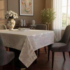 Toalha de Mesa Quadrada 180 x 180 Jacquard Bege 58% Algodão 42% Poliester