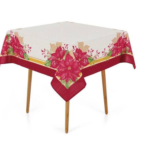 Toalha de Mesa Quadrada 4 Lugares Poinsetias Karsten Toalha de Mesa Quadrada 4 Lugares Natal Karsten A Toalha de Mesa de Natal Quadrada Karsten 4 Lugares Poinsétias possui desenho dimensionado com efeito ouro, seu centro é claro e com detalhes delicados, possui barra vermelha e em suas laterais lindas poinsétias. Sua confecção é 66% Algodão 34% Poliéster trazendo a qualidade da linha Mesa Karsten. tamanho: 1,40m x 1,40mEstampa: PoinsetiasMaterial: 66% Algodão 34% PoliésterMarca: Karsten