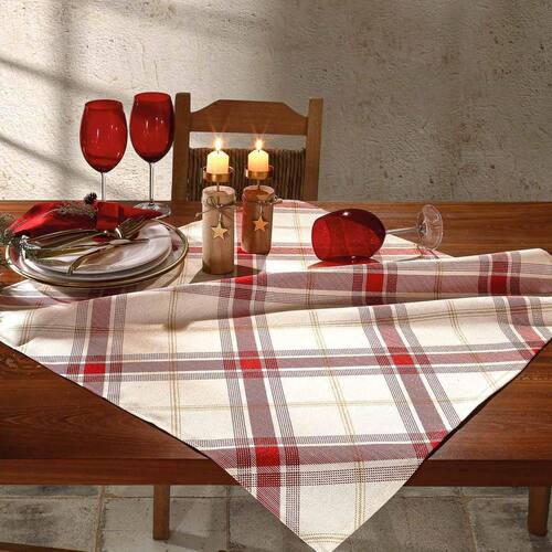 A gramatura da toalha é de 170 gramas por metro quadrado, garantindo qualidade e durabilidade. A estampa natalina traz o clima festivo para a sua mesa, com cores em bege e vermelho.