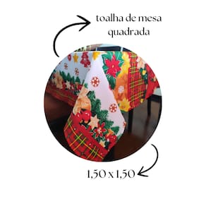 1 Toalha de Mesa Quadrada150x150 Natal Presente Tecido Oxford 100% Poliester