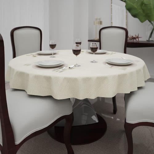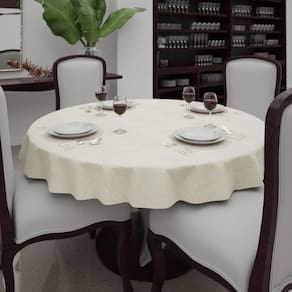 Toalha De Mesa Redonda Creme Rústica 2,00 De Diâmetro Esta toalha de mesa creme possui um belo material duradouro com tramas fortes em tecido rústico com a composição formada por 65% algodão e 35% poliéster. A Toalha de Mesa Redonda Creme Rústica 2,00 de diâmetro insere uma tonalidade que combina as mais elegantes decorações. Fabricada em ótimo tecido rústico.