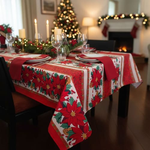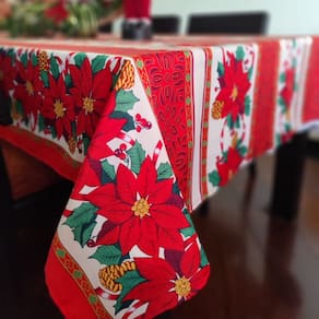 Toalha de Mesa Retangular150x220 Natal Flores Tecido Oxford 100% Poliester