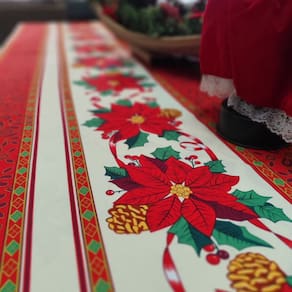 O que vem na embalagem? 1 Toalha de Mesa Retangular 150x220 Natal Flores Tecido Oxford 100% Poliester