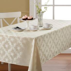 Especificações Técnicas - Marca: Corttex - Tamanho: Retangular - Cor: Marfim - Medidas: 2,20 X 1,50 m - Composição: 100% Poliéster - Toalha Jacquard - Indicada para 6 lugares - Repelente a líquidos