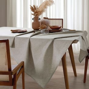 A Toalha de Mesa Retangular Linhares, da Dohler possui dimensões de 1,60m x 2,70m, sendo adequada para mesas retangulares de 8 lugares. Seu tecido apresenta uma textura sem estampas, lembrando o linho. Além disso, é uma opção prática e versátil, perfeita para uso diário, graças ao seu acabamento especial Dohler Clean, que oferece proteção e facilita a limpeza, necessitando apenas de um pano para remover sujeiras imediatamente.