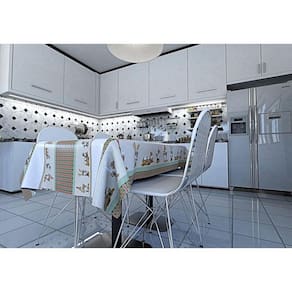 A toalha de mesa Decorelli linha Térmico possui resistência a temperaturas de até 90 graus, auxiliando na proteção da mesa quando em contato com objetos quentes. Tem o tamanho de 1,40 m de largura por 3,10 m de comprimento. Pode ser utilizada em mesa retangular de 10 lugares com tamanho padrão 1,10 x 2,80 m, com folga de 15 cm em cada lado. Composição: Filme térmico 100% PVC com reforço não tecido 100% polipropileno. Gramatura: 190 g/m2. Marca: Cipatex.