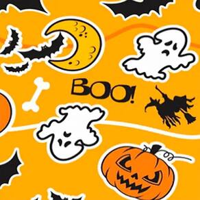 - Estampa: Desenhos de aboboras fantasmas, bruxas, morcegos e lua