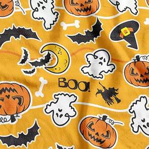 - Estampa: Desenhos de aboboras fantasmas, bruxas, morcegos e lua