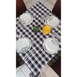 Toalha De Mesa Xadrez Italiana 8 Lugares Restaurante Cantina Cor: Xadrez Preto