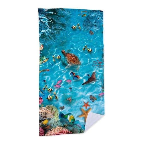 Toalha de Praia - Fundo do Mar Com Tartaruga e Arraia -