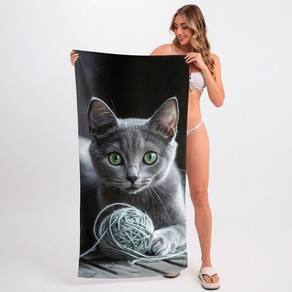 Toalha de Praia - Gato e Bola de Lã -