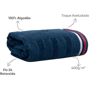 Ficha Técnica: - Nome do Produto: Toalhão de Praia Beach - Tamanho: 78cm x 1,50m; - Gramatura: 400g/m²; - Material: 100% Algodão (Exceto Barra Decorativa); - Peso Líquido: 0,468 kg; - Peso Bruto: 0,55 kg; - Dimensão Embalagem: 5cm x 25cm x 36cm; - Tumbler Extra Maciez; - Toque Aveludado;