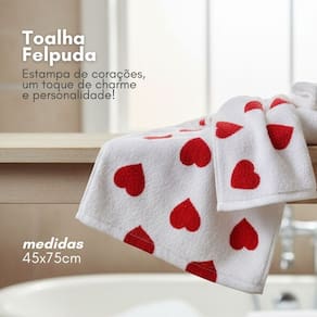 A Toalha de Rosto Felpuda Estampa Corações Vermelhos da Teka é perfeita para quem busca conforto e delicadeza no dia a dia.Produzida em 100% algodão, oferece toque macio, excelente absorção e gramatura de 400g/m², garantindo mais qualidade e durabilidade. Com estampa de corações charmosa e moderna, essa toalha de rosto deixa o banheiro mais acolhedor e cheio de personalidade.Marca: TekaTamanho: 45x75cmGramatura: 400g/m2Composição: 100% algodãoConteúdo: 1 toalha de rosto